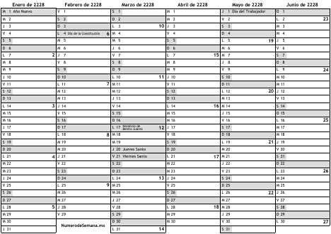 Numeros de semana 2228