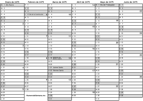 Calendario 2475