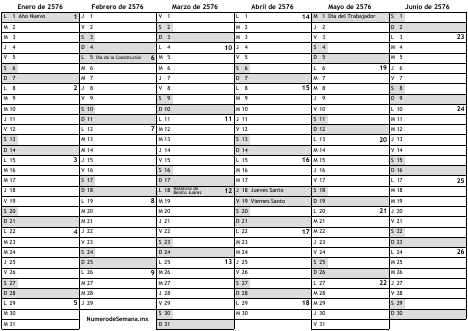 Numeros de semana 2576