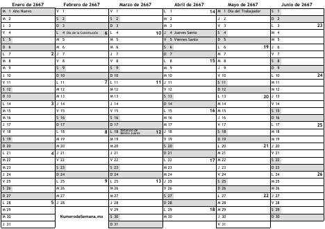 Calendario 2667